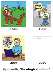 In dieser Rubrik befinden sich Cartoons mit „theologischem“ Inhalt. Dazu gehören Zeichnungen, die im Studium zur Illustration für Kommentierte Vorlesungsverzeichnisse entstanden sind. Daneben gibt es auch Einzelzeichnungen, die auf ToLeBlog veröffentlicht wurden.